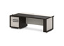 Стол руководителя с одной тумбой L-115пр/л №18302 - кромка: пвх, покрытие: ламинат, стекло: бронза сатинат в алюминиевом профиле, цвет профиля - коньяк.