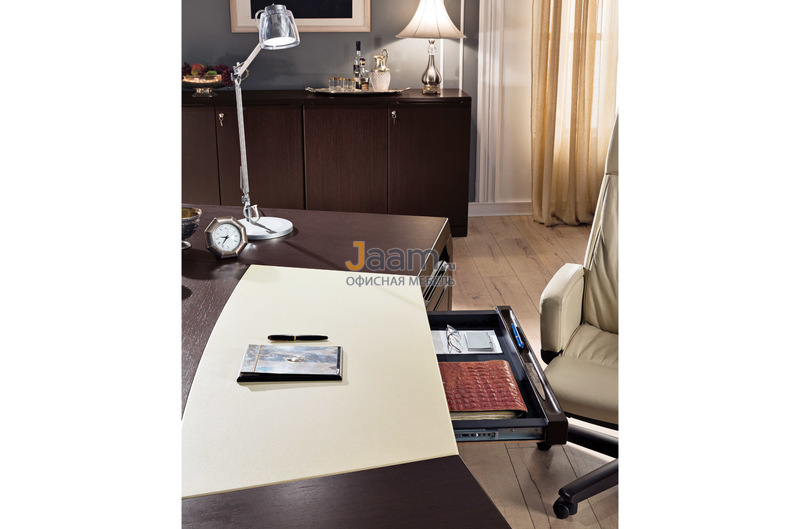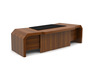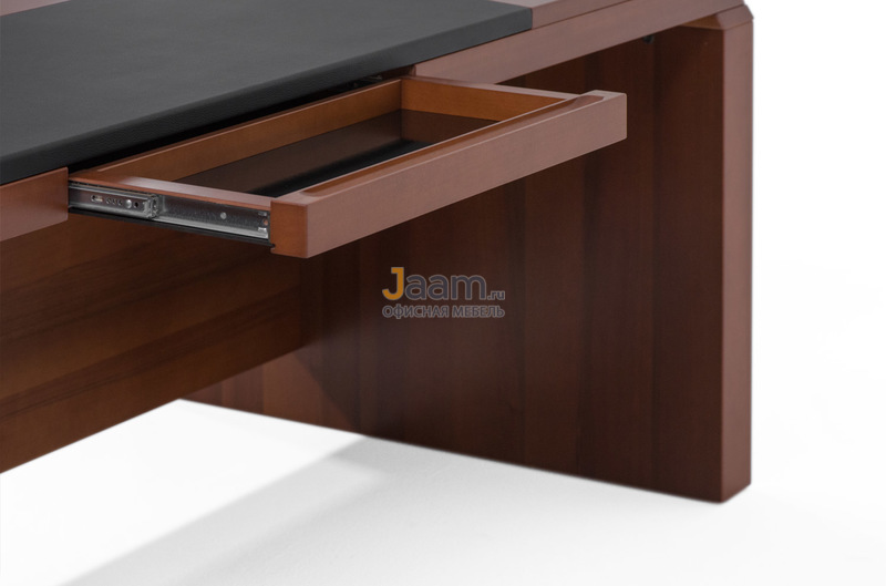 Стол письменный QP291G №6265 - столешница: тамбурат 55 мм, кромка: массив, покрытие: шпон, стекло: тонированное.